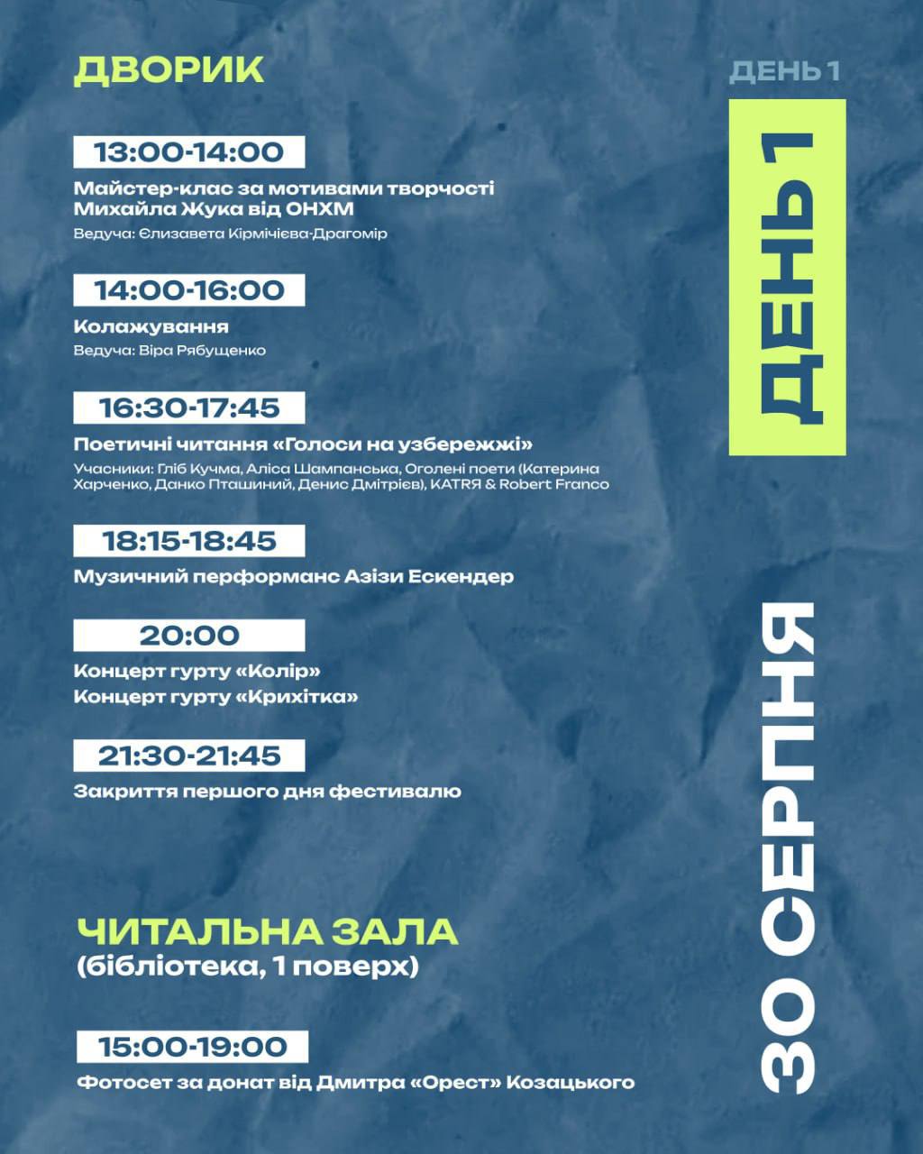 "Дорогі друзі, цього року ми започатковуємо новий літературний фестиваль в Одесі. Мені особисто ця ідея здається настільки ж амбітною, наскільки і необхідною, адже ми перебуваємо в процесі виборювання власного голосу. І що як не слово є вкрай важливим для його звучання? Нашим прагненням є створення такої точки на узбережжі, яка стала би сенсотворчим джерелом українського Півдня. Адже наше узбережжя заслуговує на те, щоби бути літературним героєм у сучасній українській культурі.