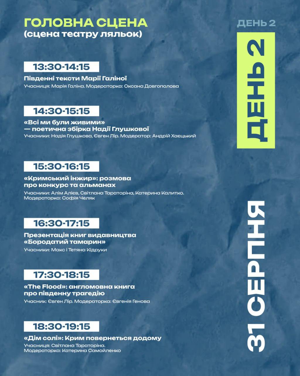 Особливим пріоритетом вважаємо представлення такого контенту на фестивалі, який спонукав би південну молодь до створення нового доробку, загалом до бажання бачити в узбережжі дещо більше аніж просто зону відпочинку. Адже наше узбережжя повне слів, які варто знаходити і промовляти назовні.