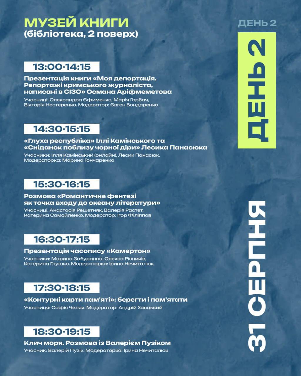 Спікерками літературного фестивалю PORT стануть лавреатка Шевченківської премії, письменниця, поетка та перекладачка Катерина Калитко, поетка з українського Півдня Надія Глушкова, Валерій Пузік — письменник, ветеран, режисер та художник.